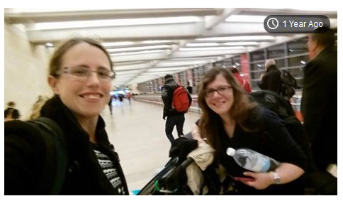 הנה אני ואחותי המהממת נעמה, בדיוק היום לפני שנה בנתב"ג. גוררות איתנו מזוודות וגם עגלת תאומים עם שני תינוקות בני פחות מארבעה חודשים. ממריאות עוד שניה לארה"ב. בטיסה שעוד נספר עליה מור"קים.